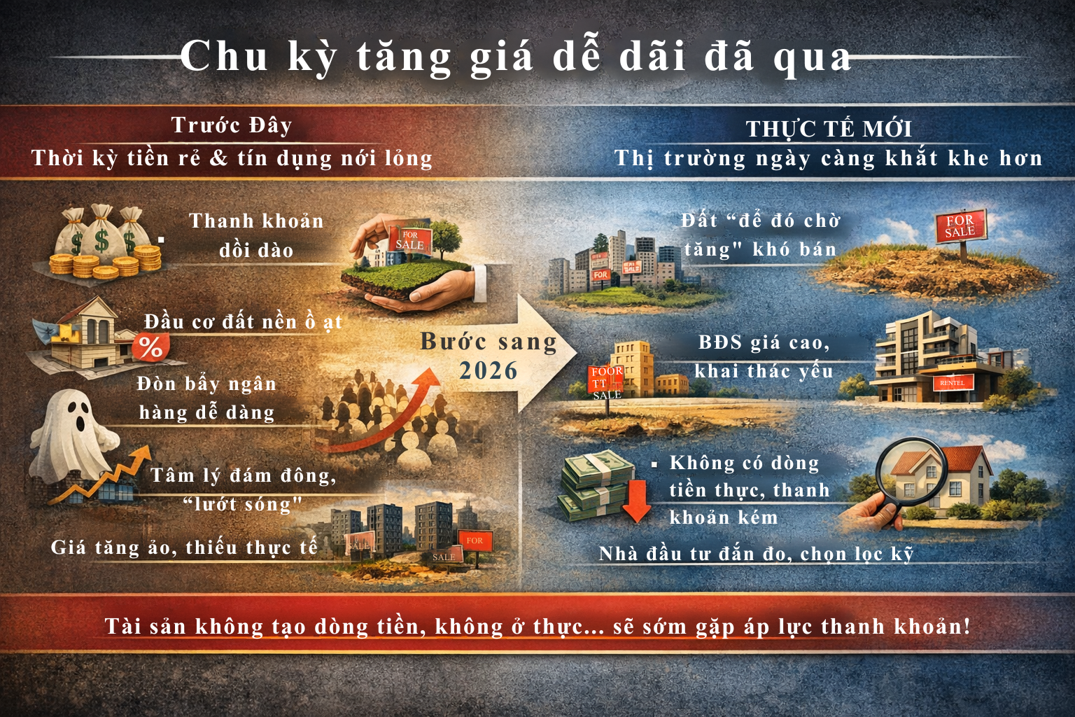 BẤT ĐỘNG SẢN 2026: VÌ SAO NHÀ ĐẦU TƯ PHẢI CHUYỂN TỪ ĐẦU CƠ SANG DÒNG TIỀN?