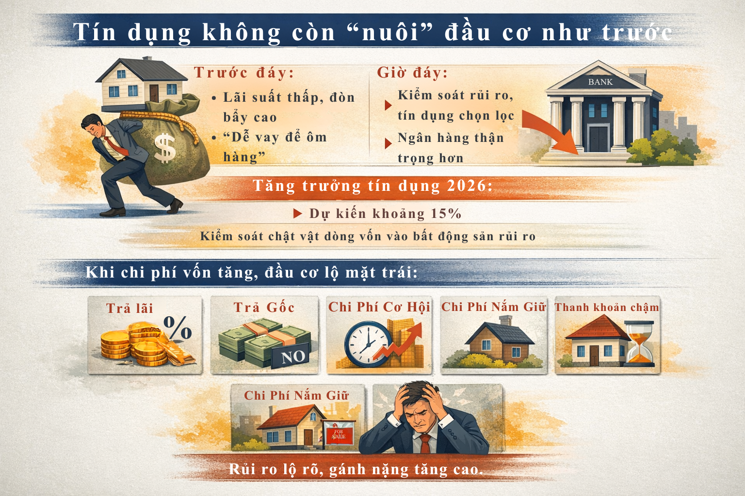 Và ở giai đoạn này, mặt trái của đầu cơ bắt đầu lộ rõ. Một tài sản chỉ sống nhờ kỳ vọng tăng giá nhưng không tạo ra giá trị sử dụng thực tế sẽ trở nên rủi ro hơn rất nhiều khi không còn được tín dụng “nuôi” dễ dàng như trước. Thị trường 2026 vì thế đang gửi đi một thông điệp rất rõ ràng: đòn bẩy vẫn có thể là công cụ tốt, nhưng chỉ hiệu quả khi đi cùng tài sản tốt, dòng tiền thật và chiến lược đầu tư đủ kỷ luật.