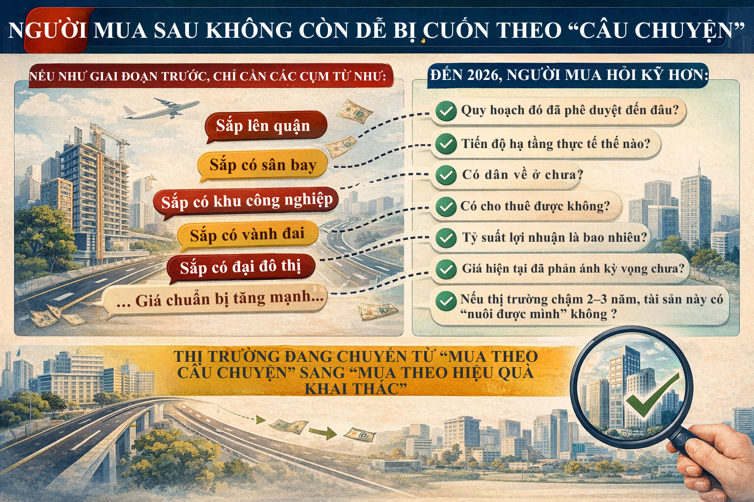 Nói cách khác, thị trường đang dần chuyển từ giai đoạn mua theo câu chuyện sang giai đoạn mua theo hiệu quả khai thác. Và trong một chu kỳ mới như 2026, đây chính là dấu hiệu của một thị trường trưởng thành hơn, chọn lọc hơn và cũng khắt khe hơn với những tài sản chỉ có kỳ vọng nhưng thiếu nền tảng thực tế.