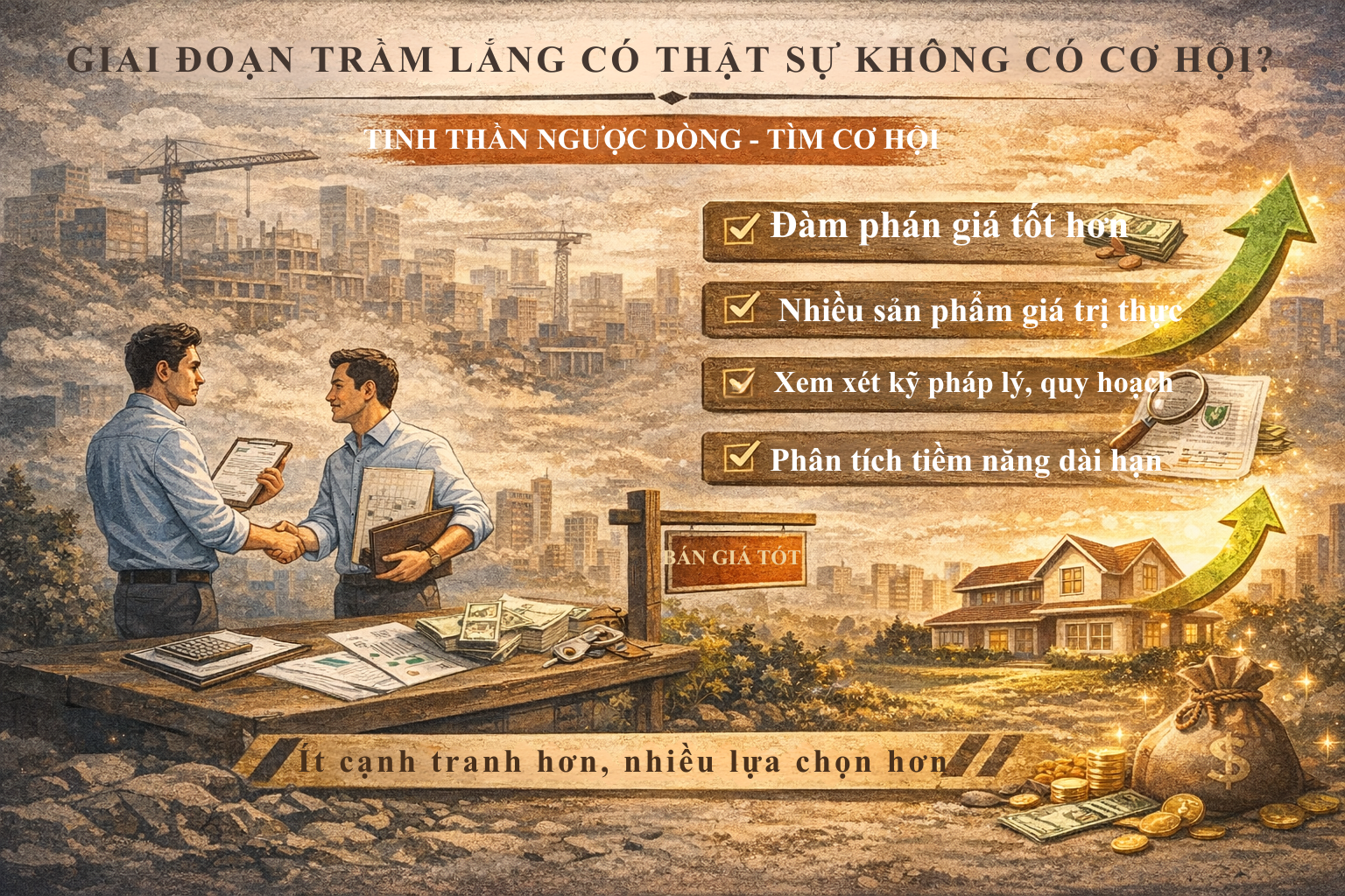 Vì vậy, thay vì nhìn nhận trầm lắng như một giai đoạn “ngủ đông” đầy rủi ro, nhiều nhà đầu tư chuyên nghiệp coi đây là bước đệm quan trọng cho chu kỳ tăng trưởng tiếp theo. Khi thị trường hồi phục, những tài sản được mua vào trong giai đoạn điều chỉnh thường mang lại biên độ lợi nhuận tốt hơn và mức độ an toàn cao hơn. Điều khác biệt không nằm ở thời điểm thị trường sôi động hay trầm lắng, mà ở cách mỗi nhà đầu tư chuẩn bị kiến thức, nguồn vốn và bản lĩnh để tận dụng cơ hội trong từng hoàn cảnh cụ thể.