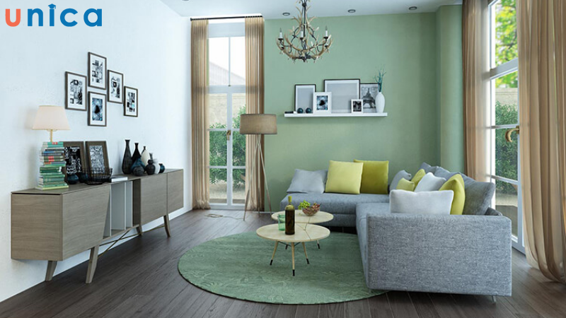Nhiều người sử dụng thêm tone màu xanh để tạo điểm cho không gian