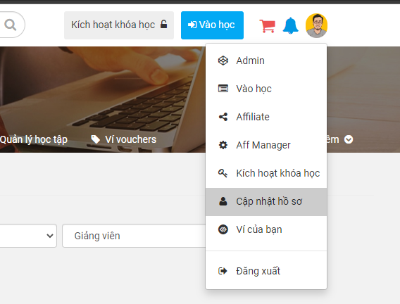 3. Nhấp vào tên của bạn từ menu thả xuống để điều hướng đến trang Hồ sơ của bạn